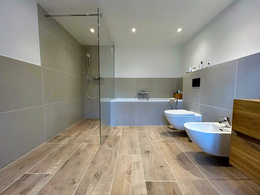 Großformatige Fliesen sind viel leichter zu reinigen und stark widerstandsfähig gegen Schimmel & Kalk.